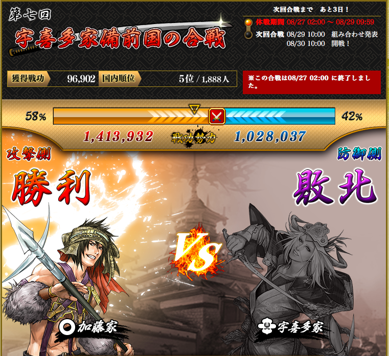 初日で10回くらい盟主戦したので、ちょっと疲れましたw