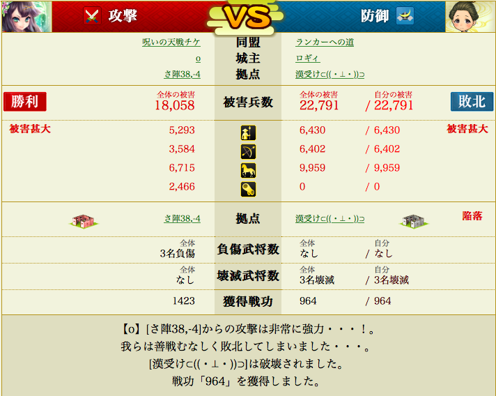自分ももっと武将を鍛えなければ・・・(9`・ω・)9頑張リマス.+゚*。:゚+